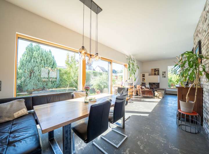 Die umfassende Kernsanierung des Bestandsgebäudes im Jahr 2018 sowie der großzügige, rund 100 m² große Anbau lassen das Haus in neuem Glanz erstrahlen. Im Anbau sorgt ein edler Sichtestrichboden für modernes Loft-Feeling, während im Bestandshaus der restaurierte Echtholzparkettboden von mit seiner warmen Ausstrahlung begeistert. Die Raumhöhe von über 3 Meter im Anbau verleiht den Räumen zusätzlich Großzügigkeit und ein einzigartiges Raumgefühl.