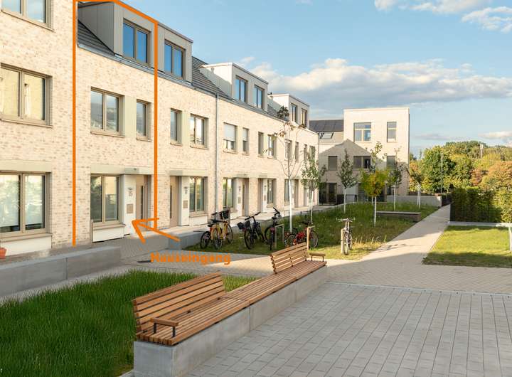 Die Reihenhäuser sind nach dem Standard eines BEG-Effizienzhaus 55 gedämmt. Ein Effizienzhaus 55 spart 45 Prozent der Energie eines konventionellen Neubaus und ist daher besonders umweltfreundlich. So ziehen Hitze und Kälte gar nicht erst ins Haus ein.