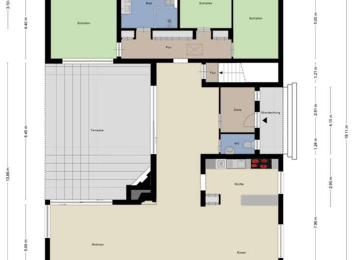 Das bestehende Wohnhaus verfügt über eine gut strukturierte Grundrissgestaltung, die mit überschaubarem Aufwand modernisiert und an individuelle Wohnbedürfnisse angepasst werden kann. Besonders attraktiv: Im Parterre befindet sich derzeit eine separate Einliegerwohnung, deren Fläche alternativ auch dem Hauptwohnbereich zugeschlagen werden könnte – beispielsweise als großzügiges Wohnzimmer oder als Kinderwohnbereich.
