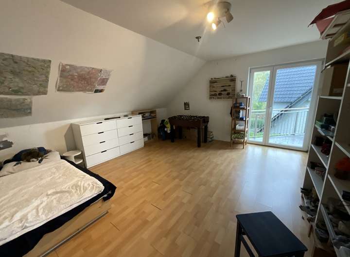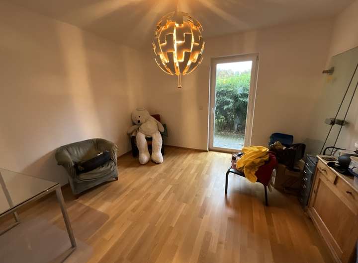 Ein Gäste- oder Arbeitszimmer liegt direkt neben dem Tageslichtbad mit Dusche.