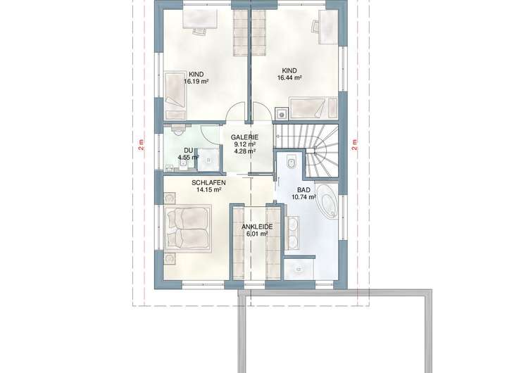 Das Bauvorhaben befindet sich noch in der Planphase. Es handelt sich um eine Beispielprojektierung, vorbehaltlich der Baugenehmigungserteilung. Wir gleichen für Sie gerne die Raumaufteilung entsprechend Ihrer Wünsche und Bedürfnisse an.