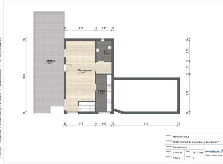 ZE:Zwischenebene mit 1 Zimmer, Küche, Terrasse, Haus 1