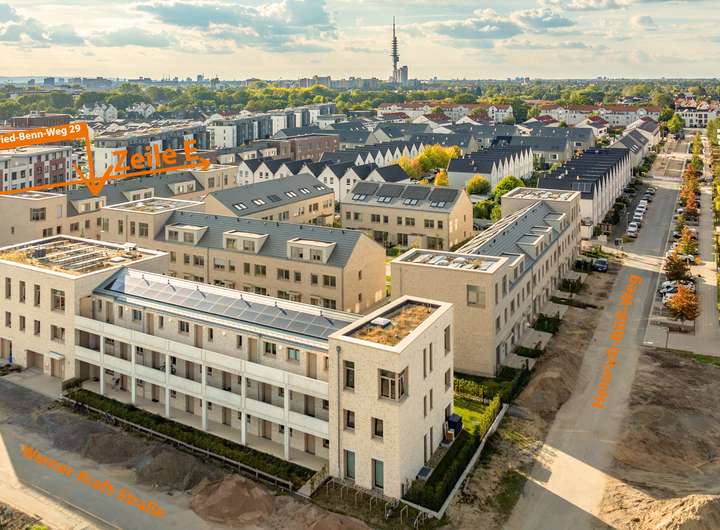 Die Reihenhäuser sind nach dem Standard eines BEG-Effizienzhaus 55 gedämmt. Ein Effizienzhaus 55 spart 45 Prozent der Energie eines konventionellen Neubaus und ist daher besonders umweltfreundlich. So ziehen Hitze und Kälte gar nicht erst ins Haus ein.