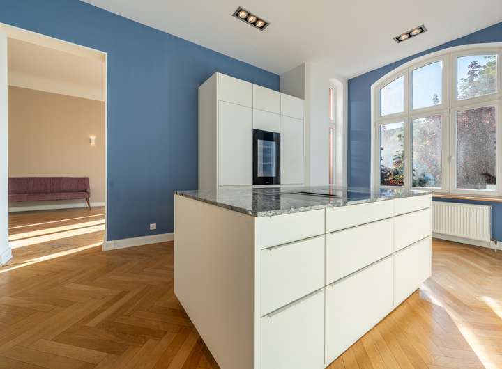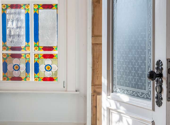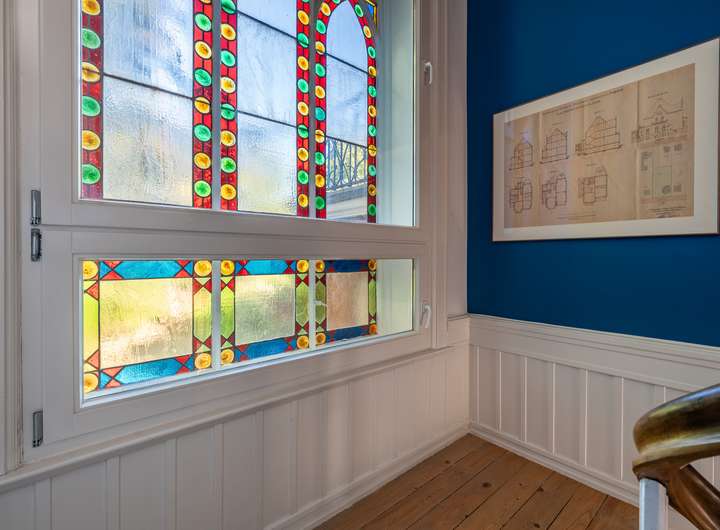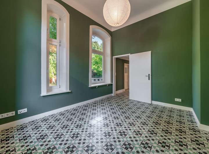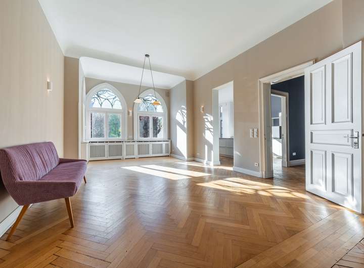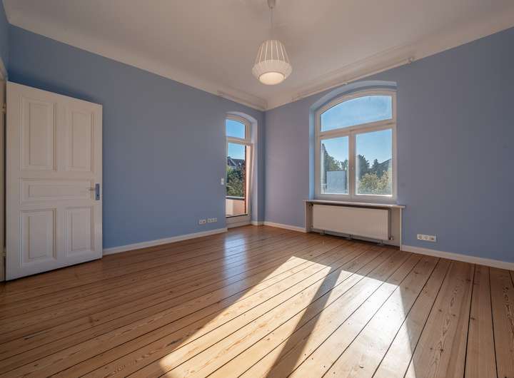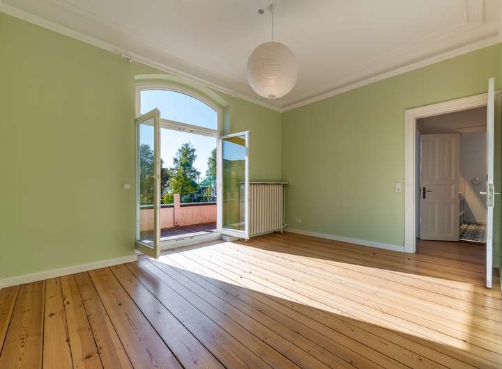 - Hohe Decken (3,60 m) und originale Dielenböden mit Jugendstilelementen
