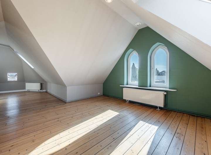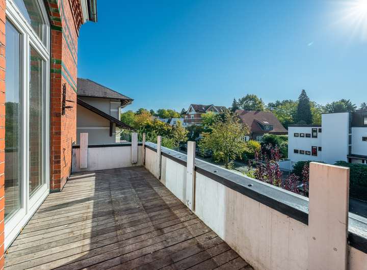 Zentraler Mittelpunkt des Erdgeschosses ist der ca. 80 m² große Wohn- und Essbereich mit halb offener Küche. Wohn- und Esszimmer gehen harmonisch ineinander über, während Eichenparkett in Fischgrätverlegung und ein Kaminofen für Behaglichkeit sorgen. Die moderne, weiße Leicht-Einbauküche wurde vor etwa zwei Jahren eingebaut und ist mit hochwertigen Miele-Geräten sowie einem Induktionsherd mit Bora-System ausgestattet. Vom Wohnbereich gelangt man auf eine obere Terrasse sowie eine weitere Terrasse im Garten. Der nicht einsehbare Garten bietet Ruhe und Entspannung. Ein zusätzliches Zimmer eignet sich ideal als Arbeits- oder Spielzimmer. Abgerundet wird das Erdgeschoss durch ein Gäste-WC. Über eine kunstvoll verzierte Holztreppe erreicht man das Obergeschoss mit drei ca. 20 m² großen Schlafzimmern. Hohe Decken und Holzdielen unterstreichen den Altbaucharme. Alle Zimmer bieten Zugang zu einem der beiden Balkone. Ein großes, helles Badezimmer mit Badewanne und Dusche ergänzt die Etage. Das ausgebaute Dachgeschoss verfügt über zwei weitere Zimmer, die flexibel als Kinder-, Gäste- oder Arbeitszimmer genutzt werden können, sowie über ein modernes Duschbad.