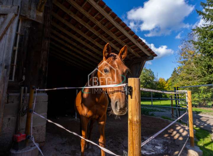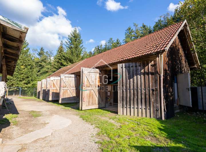 Das Grundstück umfasst insgesamt 7.066 m² mit einer angrenzenden landwirtschaftlichen Fläche. Diese bietet ideale Voraussetzungen für Tierhaltung, Gartenbau oder Freizeitgestaltung. Mehrere Nebengebäude – darunter eine große Scheune, ein ehemaliges Sägewerk, ein Stall und zwei großzügige Pferdeboxen – eröffnen vielfältige Nutzungsmöglichkeiten. Beheizt wird das Anwesen über eine moderne Wärmepumpe, die für energieeffizientes und nachhaltiges Wohnen sorgt.