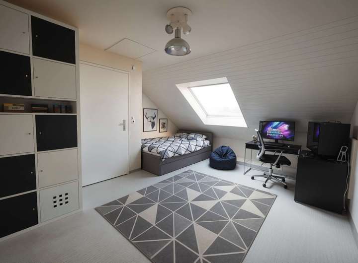 Im Obergeschoss befinden sich drei gut geschnittene Schlafzimmer sowie ein modernes barrierefreies Duschbad, das im Jahr 2015 zusammen mit den Wasserleitungen erneuert wurde. Die Bodenbeläge im Haus sind je nach Nutzung unterschiedlich ausgeführt: In Küche und Fluren wurden zeitlose Fliesen verlegt, während die Schlafzimmer mit Teppichboden ausgestattet sind.