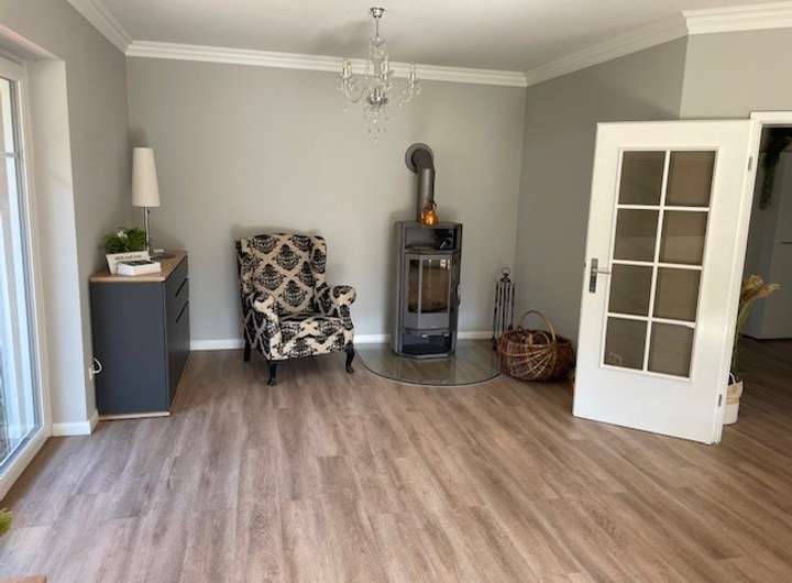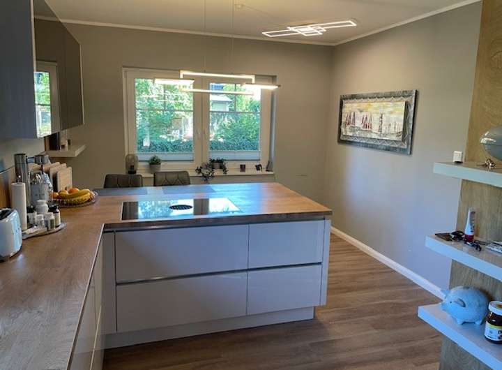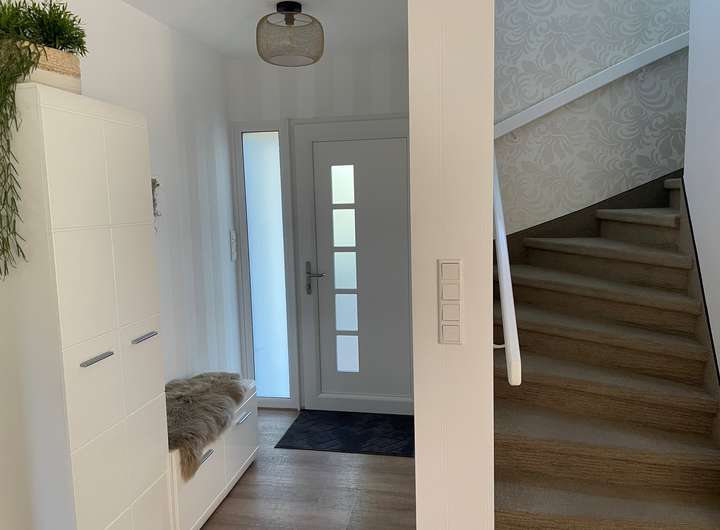 Haus und Garten sind in einem sehr guten Pflegezustand. Die Bodenbeläge im Erdgeschoß sind überwiegend mit hochwertigem Vinyl in Holzoptik ausgestattet. In den Schlafräumen im Dachgeschoß wurde Kork verlegt. Sämtliche Fenster Elemente, außer einem Dachausstiegsfenster, sind mit elektrischen funkgesteuerten Rollläden ausgestattet. Im Jahr 2021 sind neue Fenster mit Dreifachverglasung eingebaut worden.
