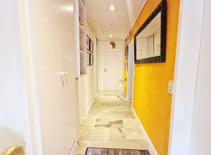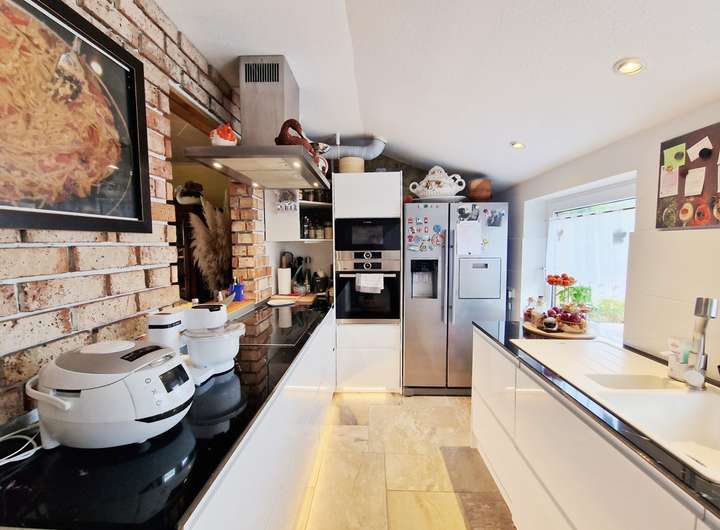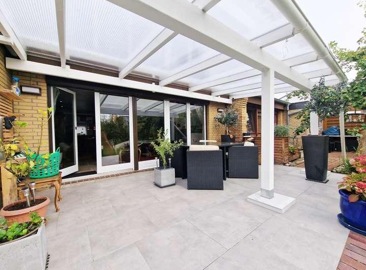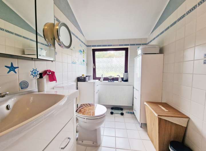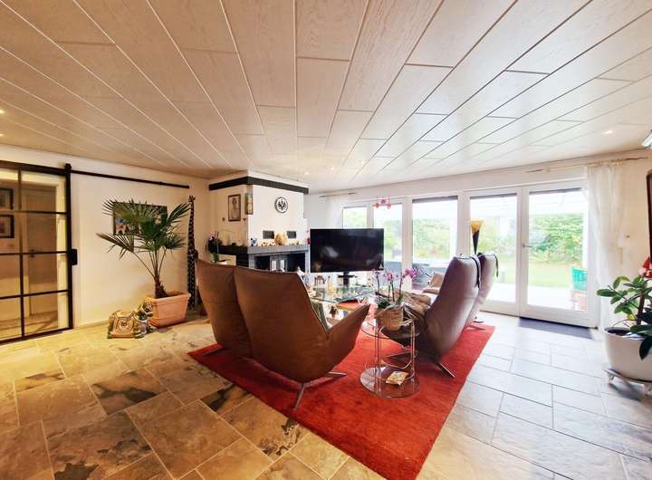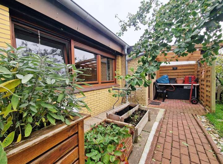 Dieser modernisierte Bungalow aus dem Jahr 1963 liegt in hervorragender Wohnlage im beliebten Nordseeheilbad Büsum – nur ca. 240 Meter vom Meer entfernt. Auf ca. 150 m² Wohn- und Nutzfläche präsentiert sich das Haus nach einer umfassenden Renovierung in 2023 in sehr gepflegtem, zeitgemäßem Zustand: es wurden neue Fußböden verlegt, die helle, moderne Einbauküche mit praktischer Durchreiche zum Essbereich stammt ebenfalls aus 2023, und die effiziente Gas-Brennwerttherme wurde 2021 installiert. Herzstück des Erdgeschosses ist der offene Wohn- und Essbereich mit Kamin und direktem Zugang auf die überdachte Süd-Terrasse, deren Terrassenfliesen erneuert wurden. Ergänzt wird die Ebene durch einen einladenden Flur, ein kleines Kinderzimmer, ein helles Duschbad mit begehbarer Dusche sowie ein geräumiges Schlafzimmer.