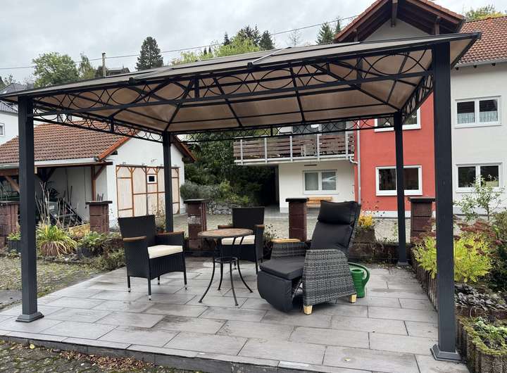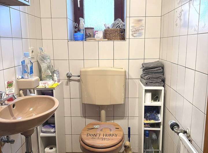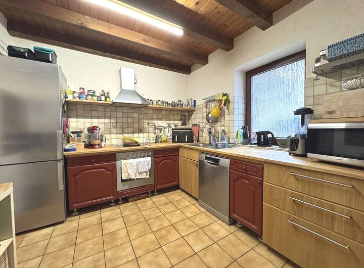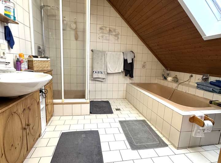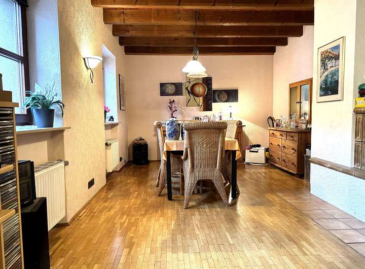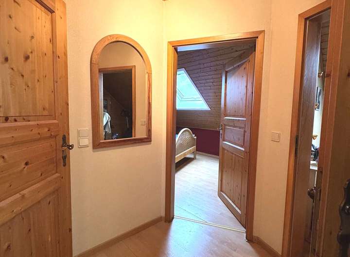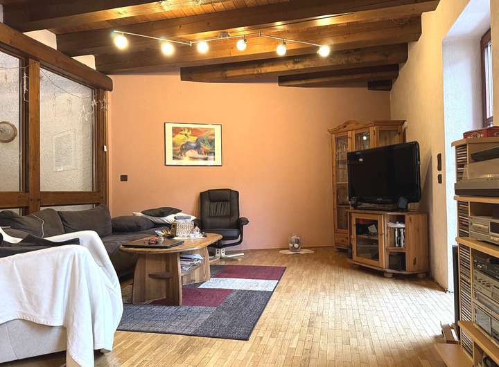 Der rechte Doppelhaus (Hausnummer 8) wurde im Jahr 1990 aufwendig umgebaut. Ursprünglich eine Scheune, bietet es heute mit 95 m² Wohnfläche modernen Wohnkomfort, einschließlich eines stilvollen Badezimmers und eines praktischen Gäste-WCs. Eine einladende Terrasse erweitern den Wohnraum ins Freie und schaffen ideale Plätze zum Entspannen und Genießen.