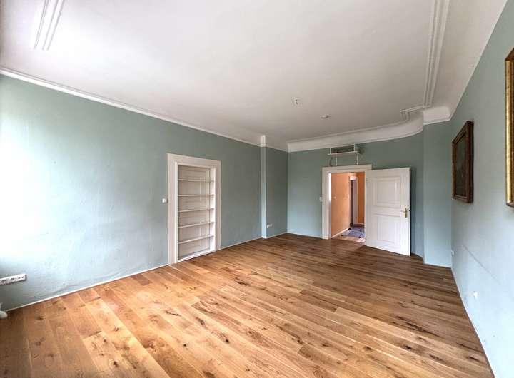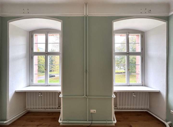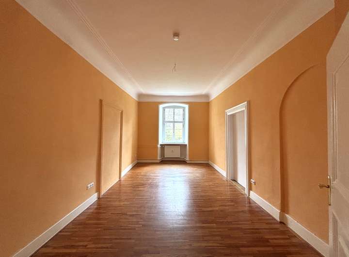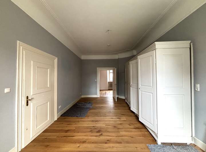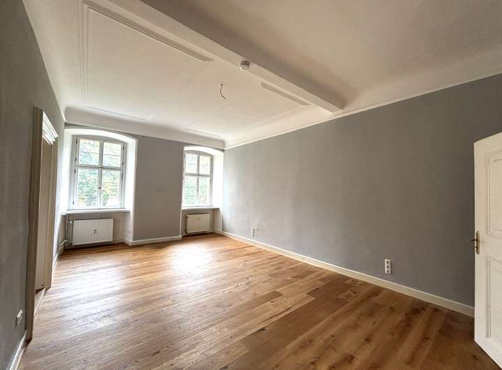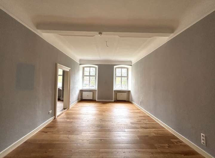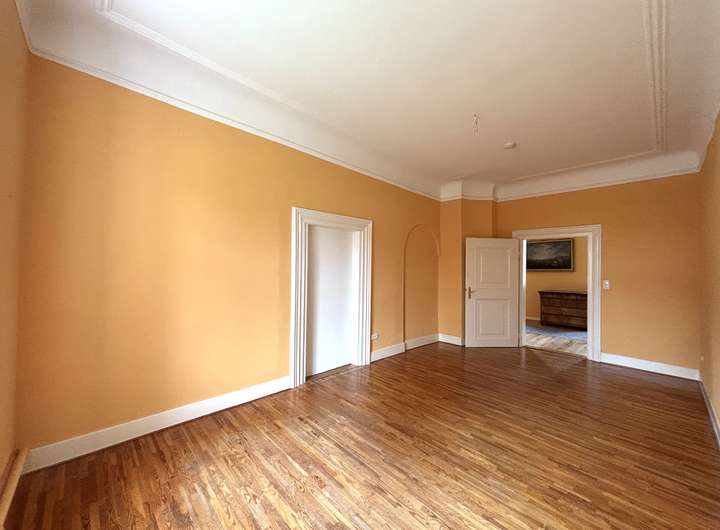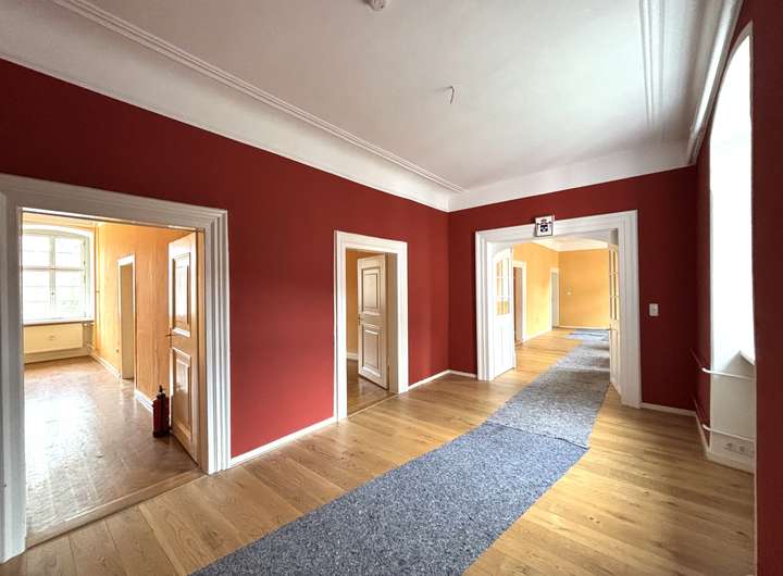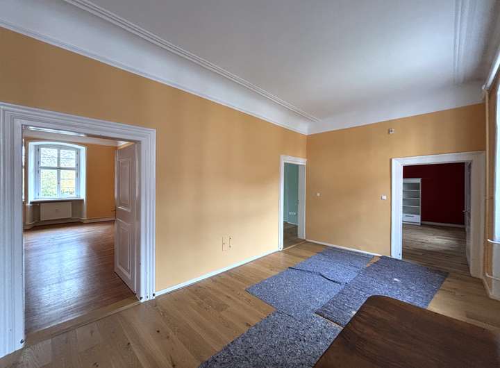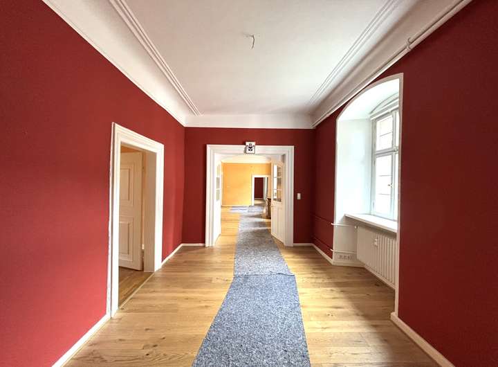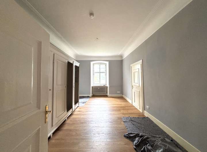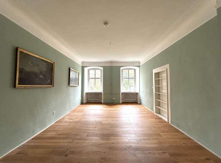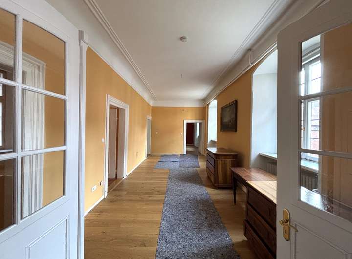 Die Wohnung liegt im 2. Obergeschoss des Schlosses und beeindruckt durch ihre repräsentative Atmosphäre – ein Refugium für Menschen mit Sinn für Kultur, Geschichte und Eleganz.