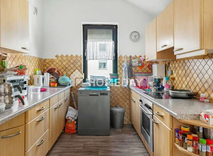 Die aktuelle Kaltmiete von 2.019,55 Euro pro Monat sorgt für einen sofortigen Cashflow. Beide Wohnungen und der Gewerbebereich sind solide ausgestattet – eine Mischung aus Fliesen, Laminat und Auslegware sorgt für eine ansprechende Vielfalt, während doppelt verglaste Metallfenster mit Rollläden den Komfort abrunden. Ein Balkon und ein Außenstellplatz erhöhen die Attraktivität für Mieter.