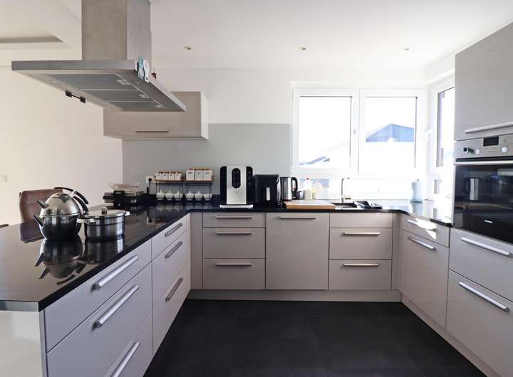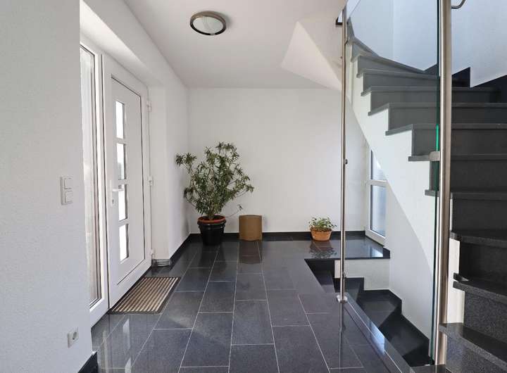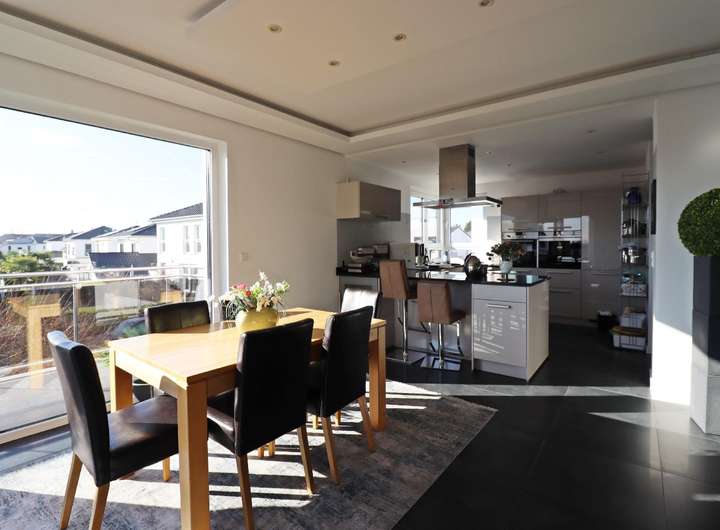Eine geräumige Garage sowie drei PKW-Außenstellplätze vervollständigen die hochwertige Ausstattung dieser Immobilie.