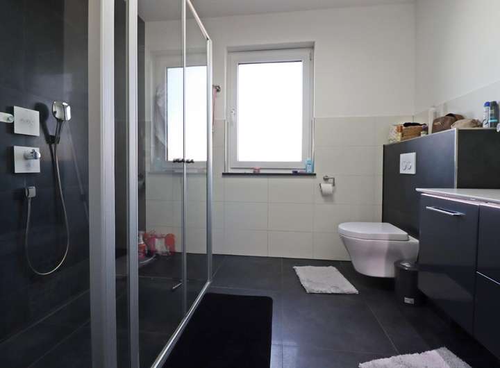 Das Haus ist vollständig unterkellert und bietet neben einem ausgebauten Wohnkeller zusätzliche Nutzflächen wie einen Heizraum und Abstellraum. Die innovative Fußbodenheizung in Kombination mit einer energieeffizienten Luftwärmepumpe sorgt für eine angenehme Wärme.