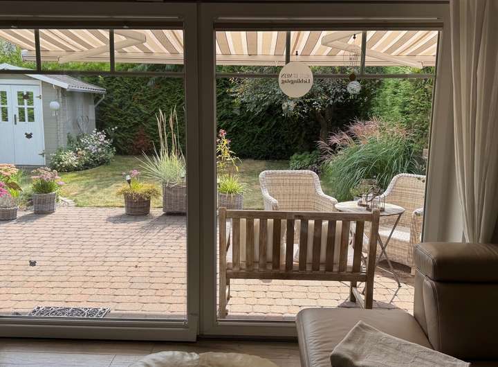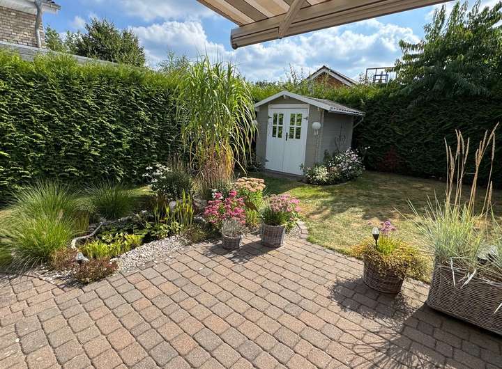 Die Immobilie steht auf 300 m² Eigenland. Im gepflegten und liebevoll angelegten Garten gibt es ein kleines Holzgartenhaus. Das Grundstück hat eine bestmögliche Ausrichtung - Süd-/Westlage ! Es bietet ausreichend Platz für Freizeit, Spiel und Hobby.