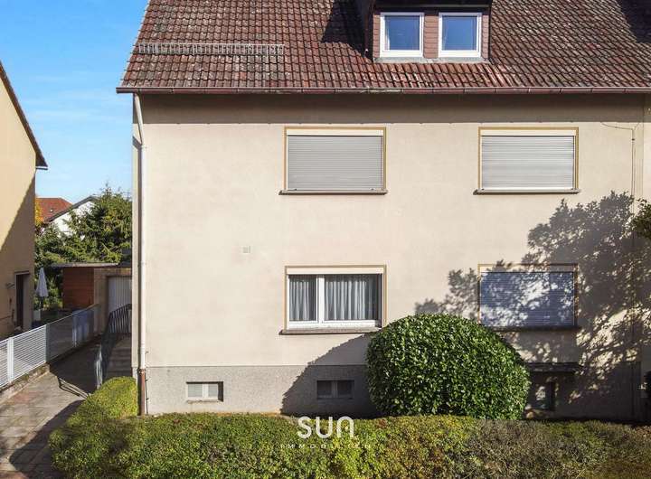Entdecken Sie dieses außergewöhnlich große Haus mit Erbpacht in begehrter Lage von Oberursel (Taunus). Mit insgesamt 7,5 Zimmern und 3 Bädern bietet die Immobilie beeindruckend viel Platz – ideal für Familien mit mehreren Kindern, für gemeinsames Wohnen mehrerer Generationen oder für alle, die viel Raum für Homeoffice, Gäste oder Hobbys benötigen. Das Haus erstreckt sich über rund 180 m² Wohnfläche auf drei Etagen und steht auf einem grundstücksähnlichen Areal von etwa 399m². Im Erdgeschoss befindet sich ein großzügiger Wohn- und Essbereich mit direktem Zugang zur Terrasse und in den Garten, der zum Entspannen, Spielen oder Gärtnern einlädt. Eine separate Küche sowie ein Gäste-WC ergänzen diese Ebene. In den oberen Stockwerken befinden sich insgesamt vier Schlafzimmer; das Hauptschlafzimmer verfügt über ein eigenes Bad en suite. Drei weitere Bäder bieten ausreichend Komfort und Privatsphäre für alle Bewohner. Eine Garage und ein zusätzlicher Außenstellplatz sorgen für komfortables Parken direkt am Haus, während der Keller mit seinen Abstellmöglichkeiten zusätzlichen Stauraum für Vorräte, Fahrräder oder Hobbygeräte bietet. Achtung: Die Immobilie befindet sich insgesamt in einem renovierungs- bzw. sanierungsbedürftigen Zustand. Viele Bereiche des Hauses, insbesondere Bäder, Fenster und Bodenbeläge, stammen noch aus früheren Baujahren und sollten modernisiert werden. Gerade darin liegt jedoch das große Potenzial dieser Immobilie: Mit etwas handwerklichem Einsatz und gestalterischem Geschick lässt sich hier ein großzügiges und individuelles Zuhause schaffen, das perfekt zu den Bedürfnissen einer großen Familie passt. Der vergleichsweise günstige Kaufpreis erklärt sich sowohl durch diesen Sanierungsbedarf als auch durch das Erbpachtmodell, das anstelle des Grundstückskaufs eine langfristige Nutzung vorsieht. Die Raumaufteilung über drei Ebenen eignet sich hervorragend für Mehrgenerationenwohnen. Im Erdgeschoss könnten die Großeltern eine eigene Wohnung beziehen, während im Obergeschoss und Dachgeschoss genug Platz für Kinderzimmer, Homeoffice oder einen separaten Rückzugsbereich entsteht. Das Elternschlafzimmer mit eigenem Bad bietet Ruhe und Privatsphäre. Das Haus steht auf einem Erbpachtgrundstück der Kirche, was bedeutet, dass Sie das Gebäude erwerben, das Grundstück jedoch langfristig – über 75 Jahre (neuer Vertrag) – pachten. Der jährliche Erbbauzins ist abhängig, ob Sie die Immobilien selbst bewohnen. Bei mehreren Kindern oder als Mitglied der evangelischen Kirche kann der Betrag deutlich reduziert werden (im allerbesten Fall 145,30 Euro / monatlich). Diese Doppelhaushälfte bietet damit eine seltene Kombination aus großem Raumangebot, flexibler Nutzungsmöglichkeit und günstigen Einstiegskonditionen. Sie eignet sich ideal für Familien, die ein Zuhause mit Potenzial suchen, das sie nach eigenen Vorstellungen gestalten möchten. Der Sanierungsbedarf ist einkalkuliert und im Preis bereits berücksichtigt – eine ideale Gelegenheit für alle, die den Charme eines gewachsenen Hauses zu schätzen wissen und den Mut zur Modernisierung mitbringen.