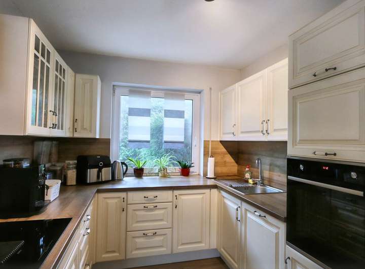 Schon beim Betreten des Hauses fällt die gehobene Ausstattungsqualität ins Auge: 2020 wurden im gesamten Wohnbereich sämtliche Böden und Sockelleisten erneuert, die Türen und Türstöcke modernisiert und die Wände versetzt, verputzt und frisch gestrichen. Die stilvolle Küche wurde im Rahmen der Modernisierungsmaßnahmen aktualisiert und verbindet praktische Funktion mit zeitgemäßem Design. Ein weiteres Plus bildet die Terrasse, die an den Garten angrenzt und als Erweiterung des Wohnbereichs in den Sommermonaten genutzt werden kann.