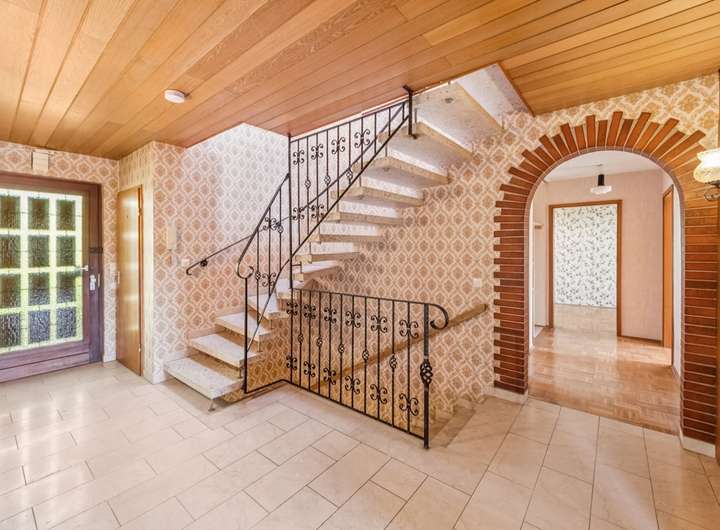 Dieses Einfamilienhaus in solider Massivbauweise wurde ca. 1971 errichtet und steht auf einem rund 632 m² großen Grundstück in leichter Hanglage. Es profitiert von einer guten Nahversorgung mit den Einrichtungen des täglichen Bedarfs in kurzer Entfernung. Das Haus ist voll unterkellert, bietet eine sehr breite Einzelgarage sowie insgesamt ca. 194 m² Wohnfläche bzw. wohnlich ausgebaute Nutzfläche im Erdgeschoss und Obergeschoss. Im Erdgeschoss überzeugt ein großzügiger Wohn- und Essbereich mit Kamin, teilweise bodentiefen Fenstern und Zugang zur Terrasse mit schönem Blick in den Garten sowie über die nördlichen Ausläufer des Odenwalds und die Burg Frankenstein. Ergänzt wird das Erdgeschoss durch zwei weitere Zimmer, eine Küche, ein Gäste-WC sowie ein Bad mit Dusche, Badewanne, Doppelwaschbecken und WC. Im Obergeschoss wurden drei Räume und ein Bad nachträglich wohnlich ausgebaut; baurechtlich genehmigt sind diese aktuell als Abstellräume. Eine baurechtliche Nutzungsänderung wurde hier bisher nicht beantragt. Einer der Räume, der im Rahmen eines Umbaus als Küche vorgesehen war, ist noch nicht vollständig fertiggestellt. Insgesamt beträgt die Fläche im Obergeschoss ca. 66 m². Der Kellerbereich bietet weitere ca. 170 m² Nutzfläche. Er teilt sich auf in einen Kellerbereich sowie einen bisher noch nicht ausgebauten, sich im Rohbau befindenden und vom Hauptkeller separierbaren Bereich mit eigenem Zugang von außen. Hier befinden sich Kellerräume und ein Hobbyraum. Dieser Bereich wurde vom ursprünglichen Eigentümer so geplant, dass hieraus eine Einliegerwohnung entstehen könnte, wobei derzeit unklar ist, ob eine solche überhaupt baurechtlich genehmigungsfähig wäre. In Jedem Fall können durch den Ausbau der Räume zusätzliche Lageflächen und ein attraktiver Hobbyraum entstehen. Das Haus ist gepflegt, jedoch weitestgehend modernisierungsbedürftig: Die Heizung (Öl-Zentralheizung von 1990), Fenster, Sanitär- und Elektroleitungen sowie Sanitärbereiche sind erneuerungsbedürftig. Aufgrund des längeren Leerstands sowie deren Baujahrs ist es zudem empfehlenswert, die wasserführenden Leitungen auszutauschen. Die Dacheindeckung ist ca. 35 Jahre alt, eine Zwischensparrendämmung wurde nachträglich eingebracht. Die Böden sind im Erdgeschoss mit Eichenparkett, im Obergeschoss mit Laminat und in den Nebenbereichen mit Fliesen belegt. Im Untergeschoss finden sich teils Fliesen, teils Rohboden im nicht ausgebauten Bereich. Terrasse und Garten erlauben den Aufenthalt in der Natur und zugleich ein hohes Maß an Privatsphäre. Insgesamt bietet das Haus großes Potenzial um nach einer Modernisierung ein attraktives Familiendomizil in guter Lage von Nieder-Ramstadt zu werden.