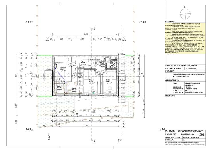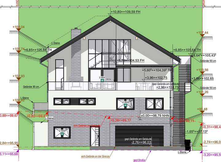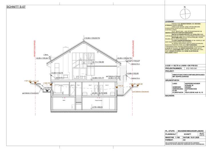 Für das Grundstück lag bereits eine Baugenehmigung für ein Einfamilienhaus mit Doppelgarage im Kellergeschoss vor.