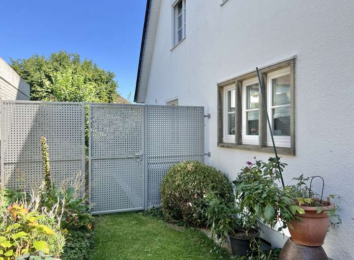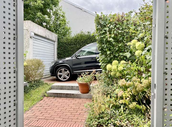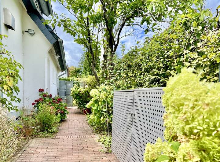 Weitere praktische Details wie eine Garage, ein zusätzlicher Stellplatz, sowie eine dezent integrierte Abdeckung für die Müllcontainer runden das Angebot ab.