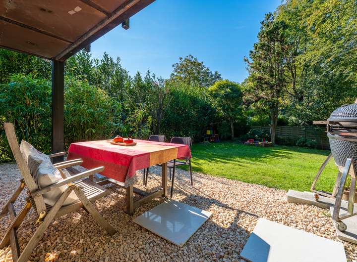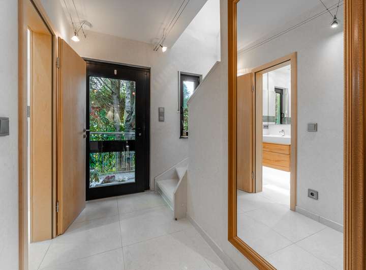 Das Haus befindet sich auf einem ca. 650 m² großen, gepflegten Grundstück, das eine harmonische Mischung aus Entspannung und Freizeitaktivitäten ermöglicht. Im Erdgeschoss erwartet Sie ein offenes Raumkonzept mit einer hochwertigen Einbauküche und einem geräumigen Wohnzimmer, das direkt zur sonnigen Terrasse führt. Genießen Sie gesellige Abende im Freien oder entspannen Sie im stilvoll angelegten Garten.