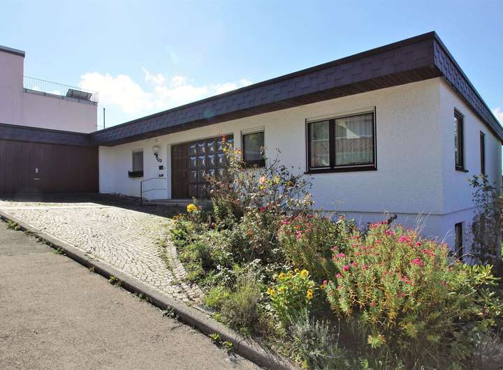 Der Bungalow mit Einliegerwohnung wurde 1980 in solider, massiver Bauweise errichtet und bietet eine durchdachte Architektur mit großzügig geschnittenen Räumen. Große Fensterflächen sorgen für lichtdurchflutete Wohnbereiche und unterstreichen das offene Wohngefühl.
