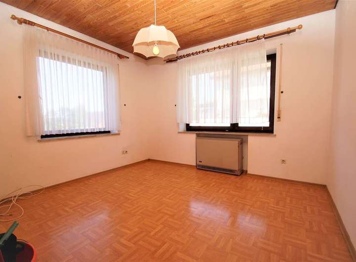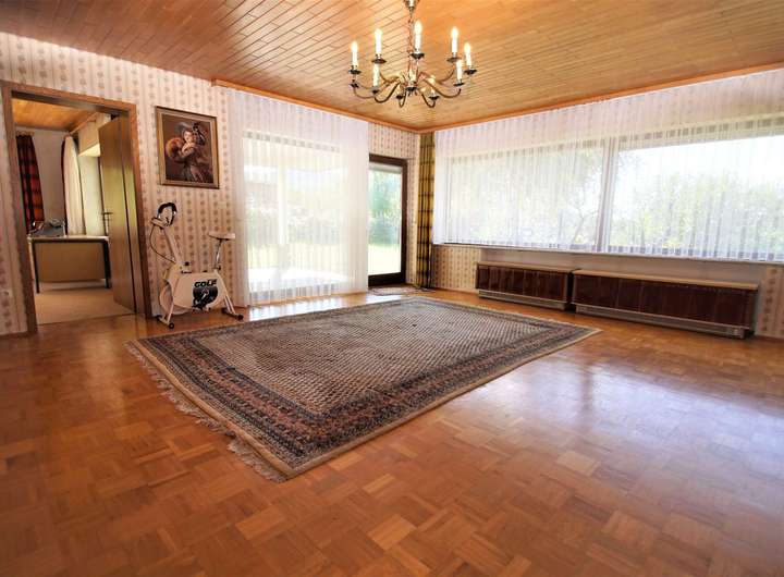 Öl-Kachelofen, 7.000 L Erdtank, Nachtspeicheröfen, isolierverglaste Holzfenster mit Rollläden, teilweise elektrisch, Parket-/Fliesen-/Teppichböden, Einbauküche, 2 Bäder, Gäste-WC, großer Balkon, große Terrasse, Markise, Wasch- und Trockenraum, Keller, Gartengeräteraum, Doppelgarage, großer Garten.