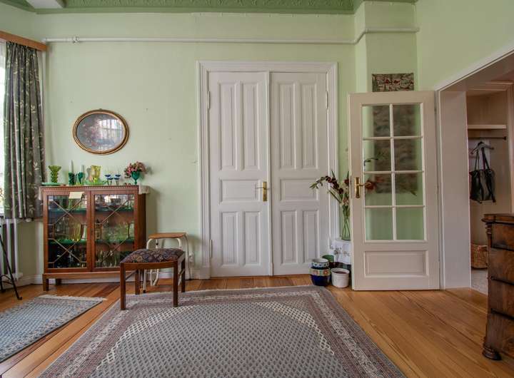 Im Inneren bewahrt das Haus zahlreiche erhaltenswerte Originalelemente, die seinen Charakter prägen: Terrazzoböden, alte Dielen, historische Fliesen, Türen und kunstvoller Stuck verleihen den Räumen eine besondere Atmosphäre, die Zeit und Stil zugleich widerspiegelt. Jede Ecke erzählt Geschichte und lädt ein, die Architektur zu genießen.