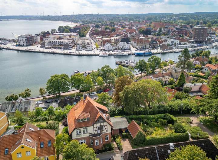Die Villa liegt in einer außergewöhnlich reizvollen und privilegierten Wohnlage im charmanten Ortsteil Borby. Eingebettet zwischen der historischen Altstadt, dem maritimen Hafen und der Ostsee, vereint sie das Beste aus naturverbundener Ruhe und urbaner Lebensqualität.