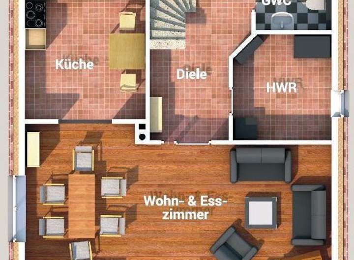 Der Großzügige Wohn-Essbereich, sowie die offene Wohnküche geben Ihnen jede Gelegenheit Familie zu leben und zu erleben. Es bietet Ihnen und Ihrer Familie viel Platz für Freiraum und Familienleben. Die großen Fenster lassen Wohnräume mit Tageslicht der nach Süden-Westen ausgerichteten Terrasse durchfluten.