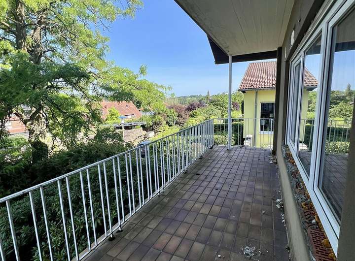 # Fernsicht vom Wohn-/ Essbereich und den oberen zwei Balkonen ins Tal
