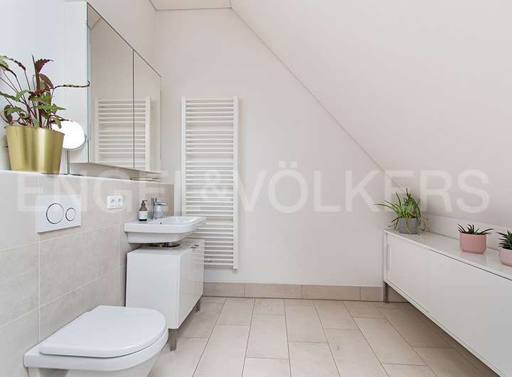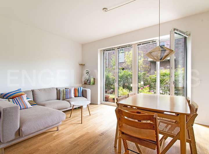 Die massive Bauweise als KfW 40 Effizienshaus, kombiniert mit einer hochwertigen Materialauswahl nach modernen Linien, einer großen Terrasse, in Verbindung mit stilvoller und zeitloser Architektur, wird Sie das exklusive Angebot des renommierten Hamburger Bauträger Behrendt Wohnungsbau begeistern. Parkett, Fußßbodenheizung, CAT Verkabelung und besonders hohe Decken sowie eine moderne Küche der Marke OMT sind u.a. hervorzuhebende Details.