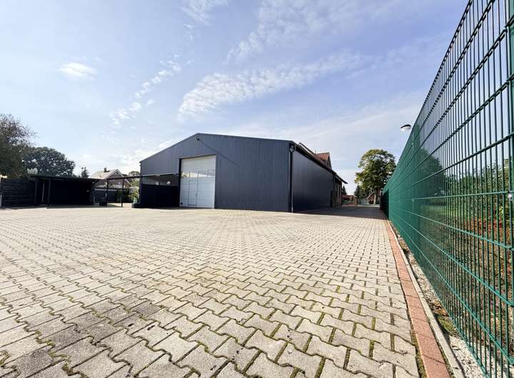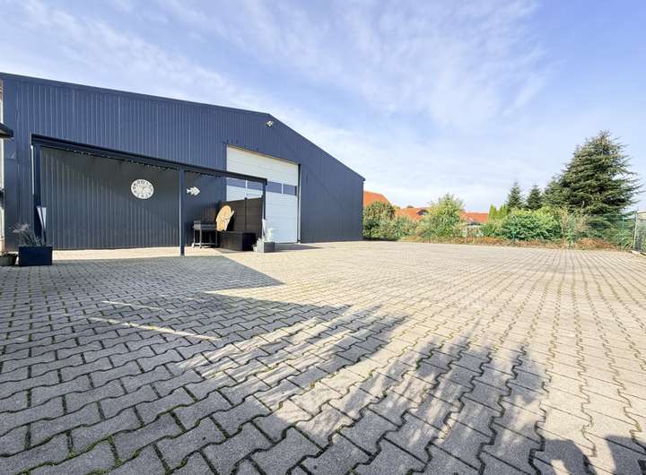 Zusätzlich zur Hauptwohnfläche erwartet Sie eine ca. 225 m² große Halle, ideal für vielfältige Nutzungskonzepte. Ob als Werkstatt, Lagerfläche oder Atelier – Ihrer Fantasie sind keine Grenzen gesetzt.