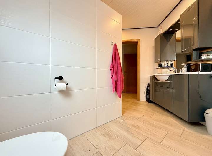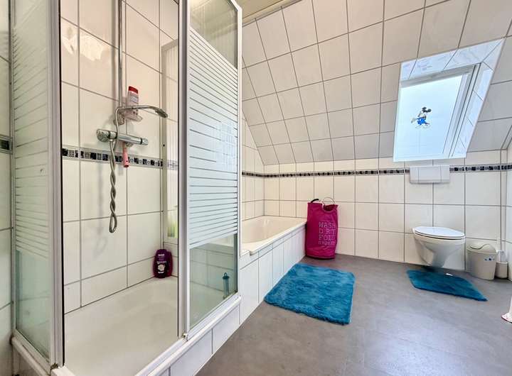 Das Anwesen verfügt über drei stilvoll gestaltete Bäder, die sowohl praktische als auch komfortable Annehmlichkeiten bieten. Im Untergeschoss beeindruckt der ca. 136 m² umfassende, ausgebaute Keller mit zusätzlichen Räumlichkeiten, die Ihnen noch mehr Gestaltungsfreiheit für Ihre individuellen Bedürfnisse eröffnen.