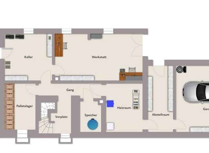 * ca. 140 m² Nutzfläche im UG mit geräumiger Werkstatt und Außenzugang