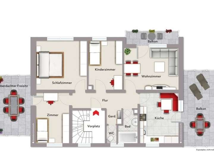 * EG mit Terrasse und Balkon - 1.OG mit Terrasse, Balkon und überdachtem Freisitz
