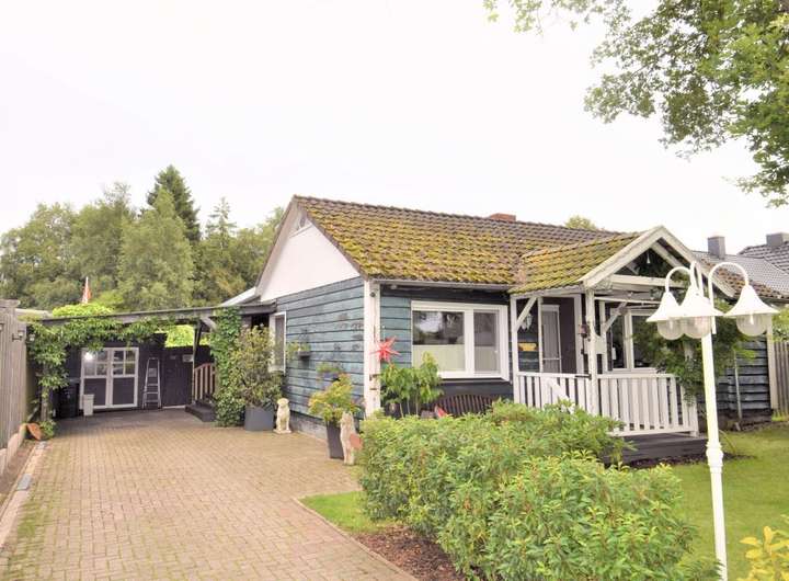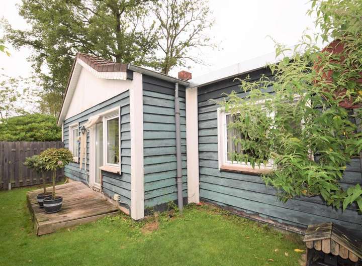 Bei diesem Objekt aus den 1960er Jahren (Erweiterung 1972) handelt sich um ein Holzfertighaus aus niederländischer Produktion.