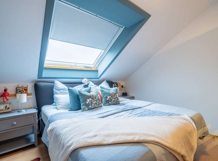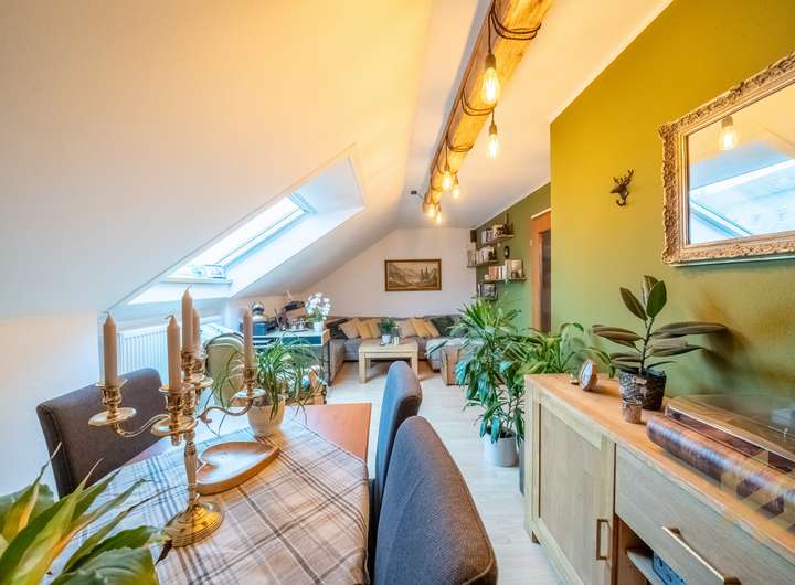 Dachgeschoss: ca. 54 m², 2 Zimmer, hell und freundlich mit großen Dachfenstern.