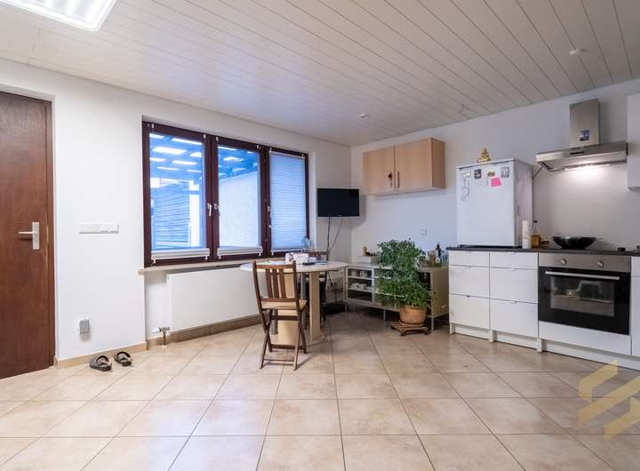 Die Immobilie eignet sich besonders für Selbstständige, Kreative oder Unternehmer, die ihre berufliche Tätigkeit in die Nähe des eigenen Wohnbereichs verlagern möchten. Die Gewerbefläche mit rund 79 m² Nutzfläche erstreckt sich über zwei Ebenen und kann sofort genutzt werden – sei es als Atelier, Büro, Studio oder kleine Werkstatt. Im Erdgeschoss befindet sich ein großzügiger Raum mit Küchenzeile und separater Toilette, während das Untergeschoss ein modernes Bad, einen großen flexibel nutzbaren Raum sowie eine Abstellkammer bietet.