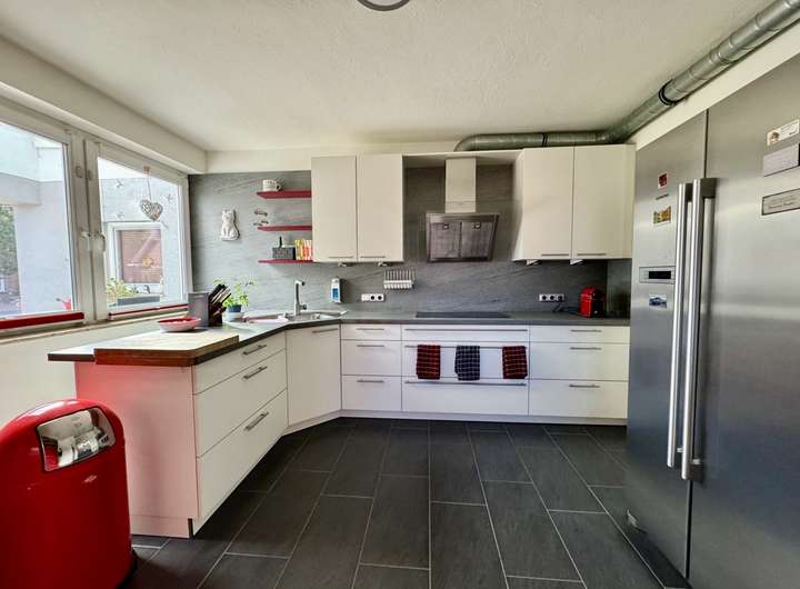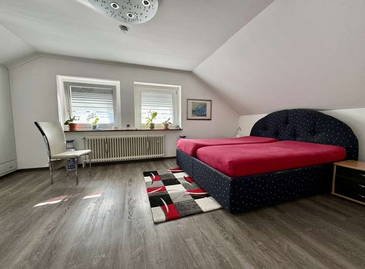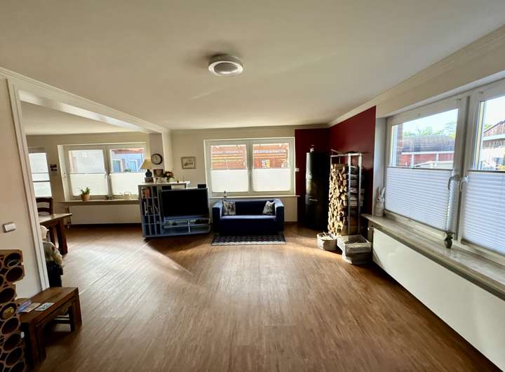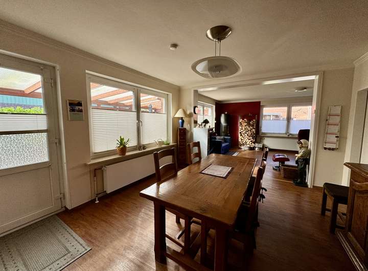 Durch die Haustür gelangen Sie in den Flur, von dem aus sich links ein Gäste-WC, ein Duschbereich, ein Büro und die Waschküche erschließen. Geradeaus öffnet sich der gemütliche Wohn- und Essbereich – ein idealer Ort zum Entspannen und für gemeinsame Stunden. Angrenzend befindet sich die Küche, die 2016 modernisiert wurde. Von hier aus erreichen Sie einen kleinen Hauswirtschaftsraum, den Heizungsraum und die Werkstatt. Im Obergeschoss erwarten Sie ein Schlafzimmer, ein Gästezimmer, ein modernes Duschbad, sowie ein weiteres Zimmer.