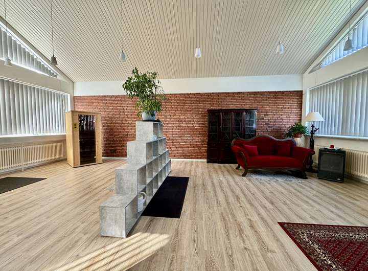 Die Einheit verfügt über einen separaten Eingang. Der Vorflur führt direkt in die Hauptfläche. Ursprünglich von einer Bank genutzt, umfasste die Fläche neben dem Büro auch den heutigen Dusch- und Waschbereich, sowie das Gäste-WC. Dank dieser flexiblen Aufteilung können Sie die Räume ganz nach Ihren Vorstellungen gestalten.