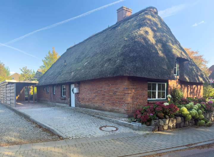 Dieses kleine Reetdachhaus mit ca. 86 m² präsentiert sich als charmante Verbindung aus traditionellem Charakter und moderner Substanz. Die Immobilie befindet sich in einem fortgeschrittenen Renovierungszustand: Das Dach wurde liebevoll ausgebaut und gedämmt, wodurch eine hervorragende Grundlage für effizienten Wärmeschutz geschaffen wurde. Die Fenster sind neu, benötigen jedoch noch eine fachgerechte Einbauarbeit, um ihre volle Funktionalität zu entfalten. Im Innenbereich sind bereits wichtige Schritte abgeschlossen: Die Einbauküche (EBK) ist neu installiert, und die Bodenbeläge sind vorgesehen, mit Echtholzdielen, die das wohnliche Ambiente unterstreichen – die Verlegung steht allerdings noch aus. Das Badezimmer im Dachgeschoss verfügt derzeit über eine Dusche; die Badewanne muss noch installiert werden, ist aber bereits vor Ort. Zusätzlich ist ein weiteres Schlafzimmer mit Ensuite-Bad geplant; der Abschluss dieser Arbeiten steht noch aus. Die Haustechnik präsentiert sich modern: Die Gasheizung stammt aus 2018, sämtliche Elektrik und Wasserleitungen wurden neu verlegt; Anschlüsse für WC und Badarmaturen sind bereits vorhanden. Fußbodenheizung ist bereits in Küche, Hauswirtschaftsraum (Hwr), Flur und Gäste-WC installiert. Im Wohnzimmer befindet sich ein Kaminanschluss. Das Haus ist rundherum von Drainage eingefasst, sodass Feuchtigkeitsschutz gewährleistet ist. Die Außenanlagen wurden liebevoll gestaltet: Der Garten lädt zum Verweilen ein, und das Carport mit einem angeschlossenen Schuppen ist neu errichtet worden. Der Energieausweis wurde vor der Sanierung erstellt, und aufgrund der umfassenden Dämmungsmaßnahmen ist eine deutlich bessere Einstufung zu erwarten. Die Immobilie bietet damit eine hervorragende Grundlage für individuelle Gestaltungspotenziale – eine ruhige, naturnahe Wohnlage mit modernem Komfort, der Raum für persönliche Gestaltungsideen lässt. Ich freue mich, Ihnen diese besondere Immobilie persönlich zu zeigen. Kontaktieren Sie mich gern für einen Besichtigungstermin.