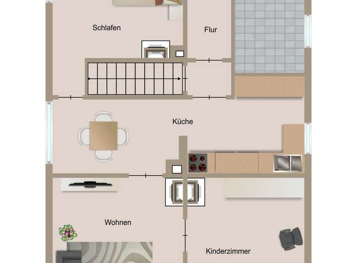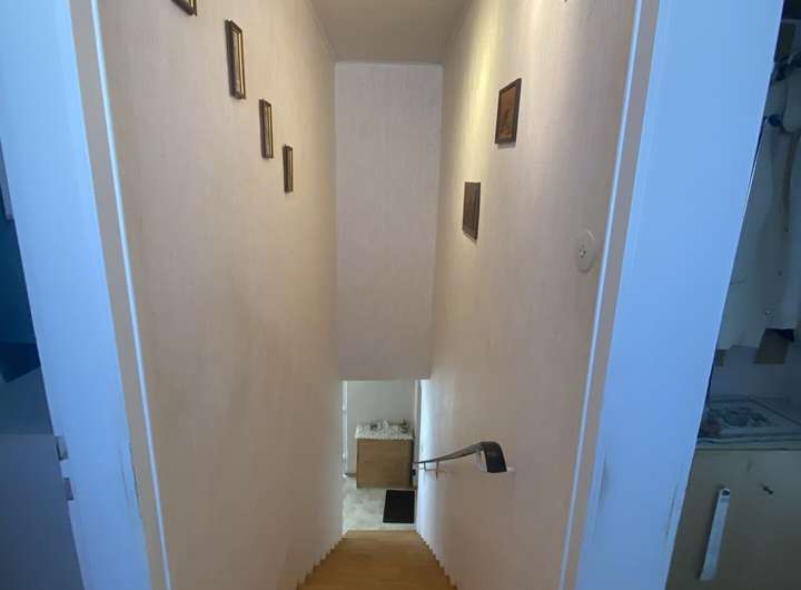 Vom Eingangsbereich des Erdgeschosses gelangen Sie über eine steile, enge Treppe in das Obergeschoss. Im gesamten Haus befinden sich kleine, dem Baujahr entsprechende Zimmer.
