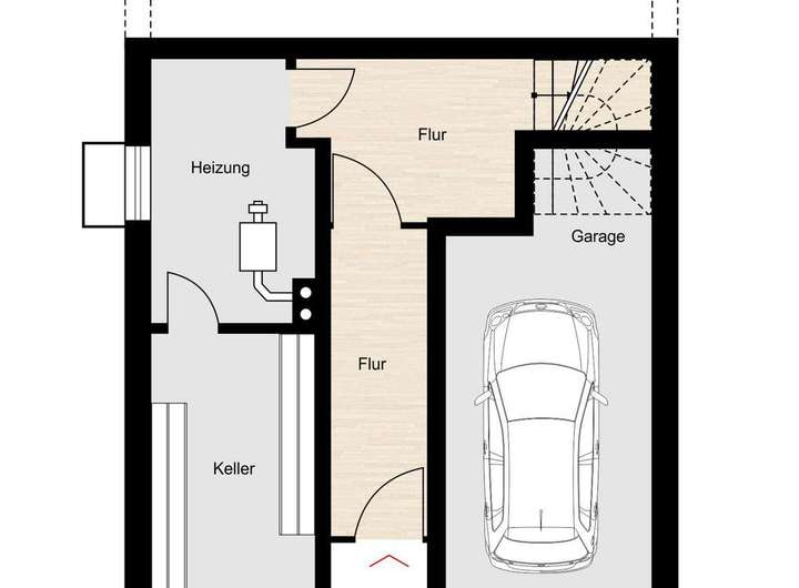 Willkommen in Ihrem neuen Zuhause. Sie betreten das Haus praktischerweise im Untergeschoss. Hier finden Sie neben zwei Kellerräumen auch ein großzügiges Treppenhaus. Alles, was den Alltag ordnet, hat hier seinen Platz.