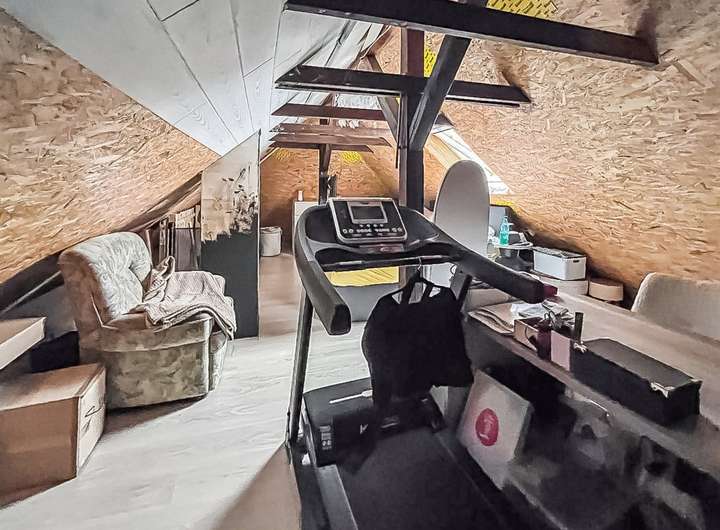 Ein Hobbyraum rundet das Raumangebot im Erdgeschoss ab. Drei weitere Räume im Dachgeschoss nutzen Sie ganz nach Bedarf als Kinder- oder Arbeitszimmer. Hier finden Sie auch ein weiteres Badezimmer mit Dusche. Mit Zugang über den Hobbyraum erfreut sich der leidenschaftliche Hobbyhandwerker an einer Werkstatt im Dachgeschoss.