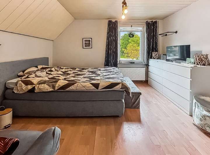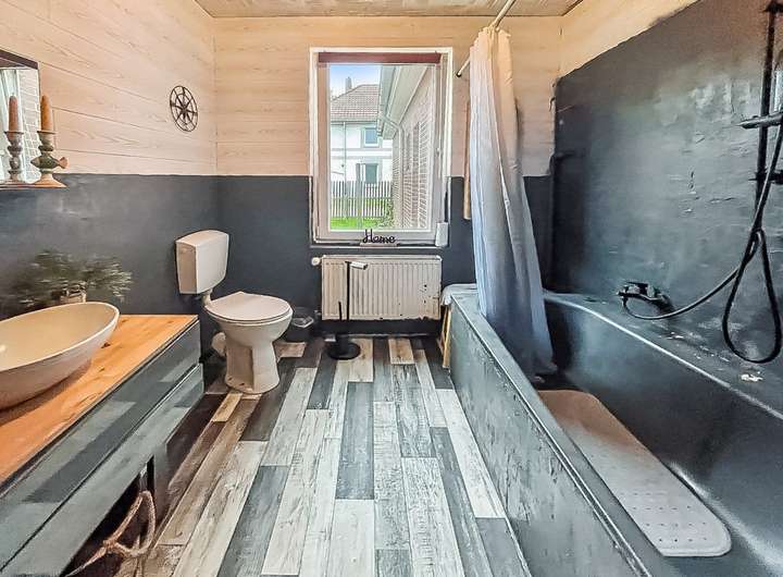Die Küche ist ca. 2011 erneuert und ca. 2022 um eine Kücheninsel erweitert worden. Das Tageslichtbadezimmer überzeugt mit einer komfortablen Badewanne. Das behagliche Elternschlafzimmer bietet ausreichend Platz für einen üppigen Kleiderschrank. Ein praktischer Hauswirtschaftsraum offeriert zusätzliche Staufläche.