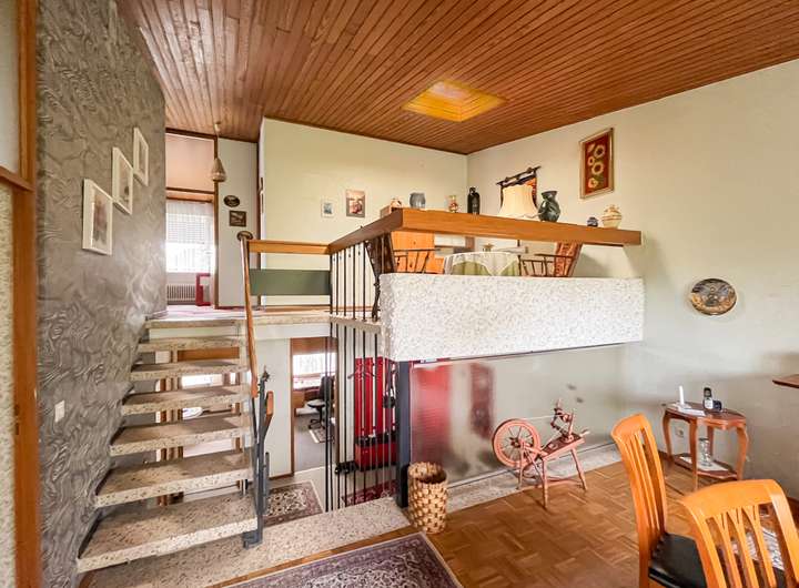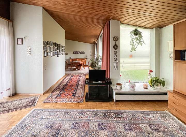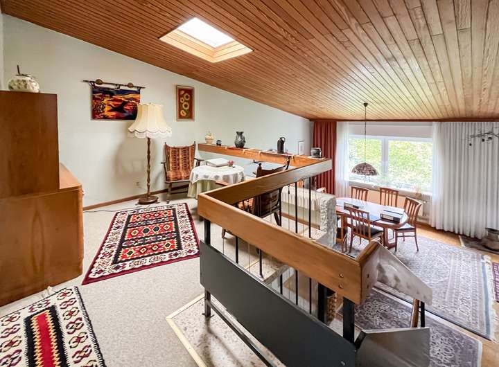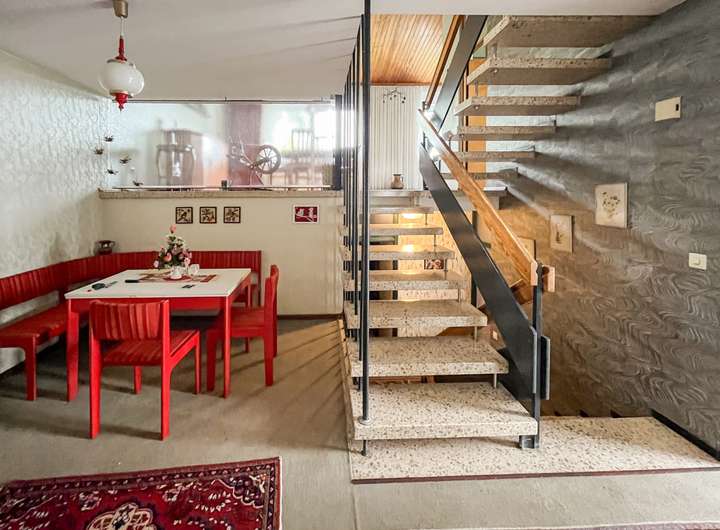 Diese außergewöhnliche Immobilie besticht durch ihren attraktiven Retro-Charme der 70er Jahre. Aufgeteilt in Obergeschoss, Zwischengeschoss, Erdgeschoss, Untergeschoß und Kellergeschoss ist hier viel Raum für große Familien. Keine üblichen 08/15 Innenaufteilungen, sondern verschiedene Level mit hellem Freiraum und Platz für wohltuend leichte und behagliche Lebensqualität.