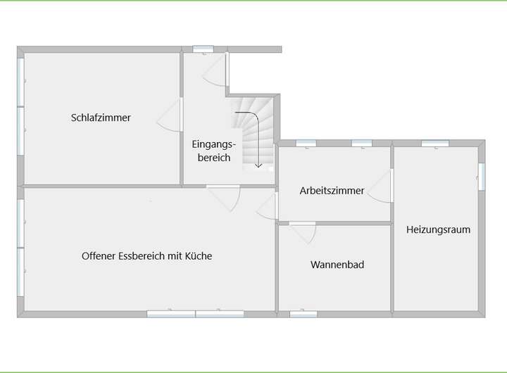 Ergänzt wird das Erdgeschoss durch ein Schlafzimmer mit direktem Zugang zur Südterrasse und in den Garten, ein Arbeitszimmer sowie ein modernes Wannenbad. Der Hauswirtschaftsraum beherbergt die neue Luftwärmepumpe (2024), bietet Anschlüsse für Waschmaschine und Trockner sowie zusätzlichen Stauraum. Er ist sowohl über das Arbeitszimmer als auch über einen separaten Nebeneingang erreichbar. Eine Holztreppe führt von hier zum nicht ausgebauten Dachboden, der zusätzlichen Stauraum bietet.