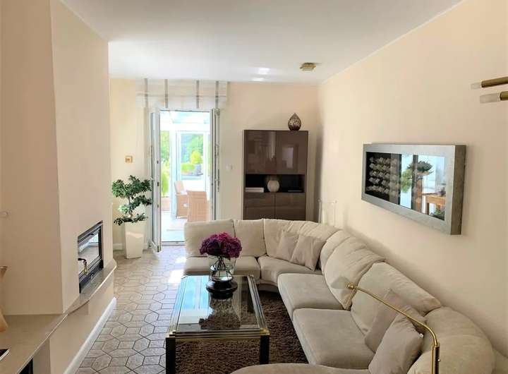 Das Wohnhaus erstreckt sich über zwei Etagen und bietet einen großzügigen Wohnbereich mit einer Fläche von 182 m². Dieser besteht aus 6 Zimmern, einer Küche, einem Badezimmer und einem Gäste-WC. Das 1. Obergeschoss beeindruckt mit seinem charmanten Altbau-Stil und beinhaltet ein offenes Wohnzimmer mit einem gemütlichen Kamin, eine modern ausgestattete Küche mit Esszimmer und einen einladenden Wintergarten. Die Dachterrasse, für die bereits eine Baugenehmigung vorliegt, kann auf vielfältige Weise genutzt und erweitert werden. Über eine Holztreppe gelangt man ins 2. Obergeschoss mit zwei Schlafzimmern, einem begehbaren Ankleidezimmer und einem Badezimmer mit einer Whirlpool-Wanne. Zusätzlicher Stauraum ist durch Dachgauben und integrierte Schränke vorhanden. Im Kellergeschoss stehen zudem vier funktionale Räume zur Verfügung sowie eine geräumige Doppelgarage (40 m²), die von außen zugänglich ist und Platz für zwei Fahrzeuge bietet.