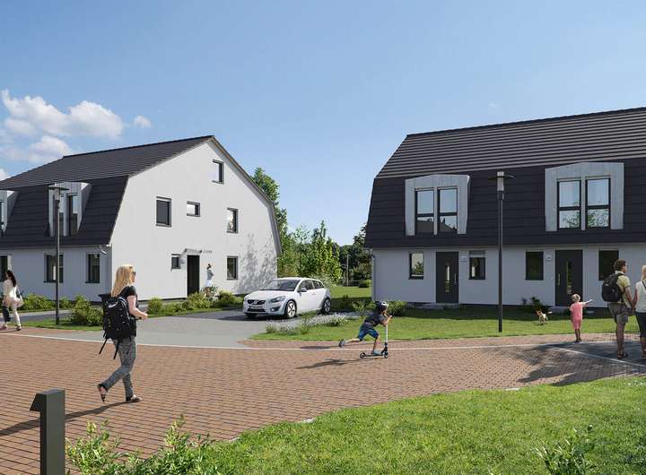 Am Wiesenweg hat die Natur das Sagen: Weite Landschaft, die das Gemüt beruhigt. Dabei liegen die neuen Häuser nur 4 km hinter der Berliner Stadtgrenze. Der Bahnhof Falkensee ist mit dem Auto in rund 12 Minuten erreichbar. Hier fahren mehrmals stündlich Züge nach Berlin.